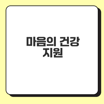전국민 마음투자 지원사업은 정서적 어려움을 겪고 있는 이들에게 전문적인 상담과 지원을 통해 그들의 마음 건강을 지키고자 합니다. 우울증, 불안장애와 같은 정신 건강 문제를 사전 예방하고, 조기에 발견하여 효과적으로 대응하기 위해 마련된 이 사업은, 국민들이 스스로의 마음 건강을 돌보는 첫 걸음이 될 것입니다.